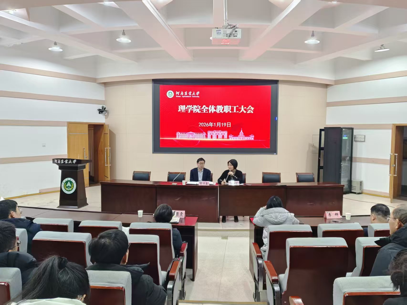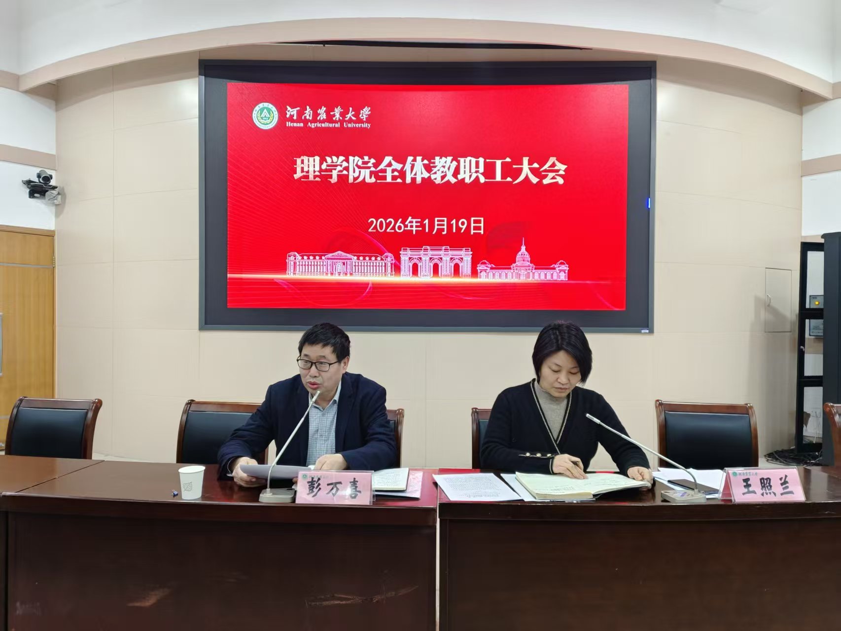 在文化路校区300人报告厅召开全体教职工大会。院领导班子以及全体教职工参会。会议由院党委书记王照兰主持。